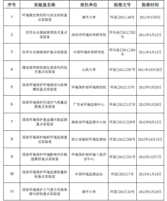環保部公布國家環境保護重點實驗室名單