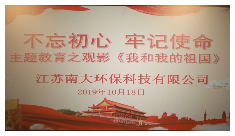 為慶祝新中國成立70周年,弘揚愛國主義精神和優秀傳統文化,堅定黨員干部及群眾的理想信念,積極推進“不忘初心、牢記使命”的主題教育工作,結合南京經濟開發區黨工委、無錫產業集團黨工委對主題教育的系列指示,南大環保于10月18日下午組織全體員工,全體黨員、預備黨員、入黨積極分子進行愛國主題電影《我和我的祖國》觀看學習活動。